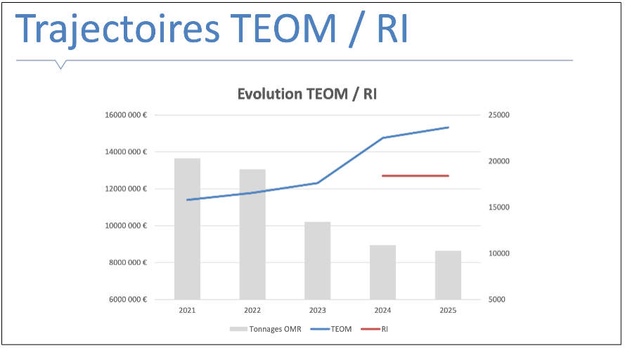 Si nous étions restés dans la même gestion des déchets, la Taxe d’Enlèvement des Ordures Ménagères (TEOM) aurait augmentée de 25% entre 2023 et 2025 (37% depuis 2021).