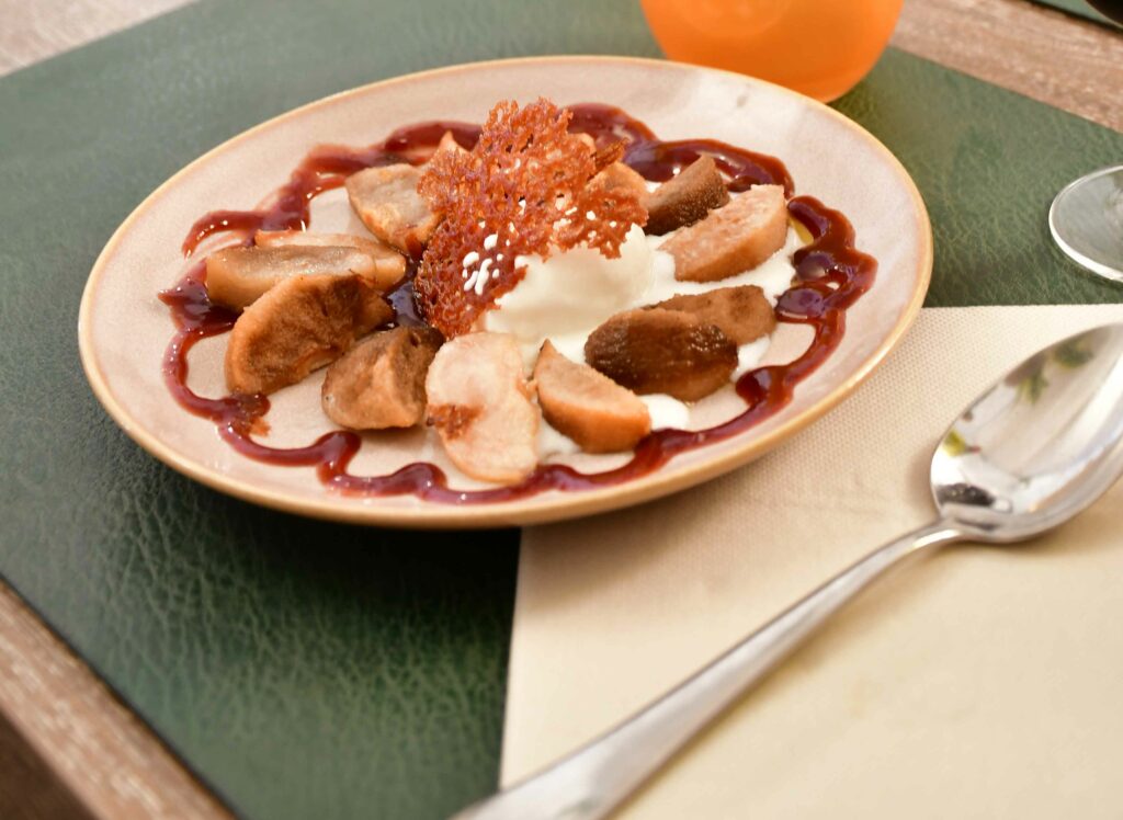 Ce vin, à la robe rubis et aux notes de fruits rouges, sublime la douceur des nashis poêlés et du coulis épicé, pour un accord tout en finesse avec ce dessert automnal.