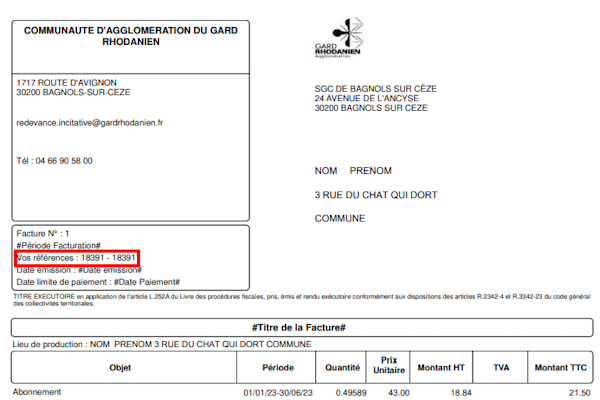 - Munissez-vous de « Vos références » présentes sur votre facture Redevance Incitative pour créer votre compte usager.
