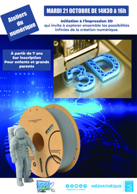 Cet atelier d’initiation à l’impression 3D invite petits et grands à explorer ensemble les possibilités infinies de la création numérique. Gratuit sur inscription, dès 7 ans.