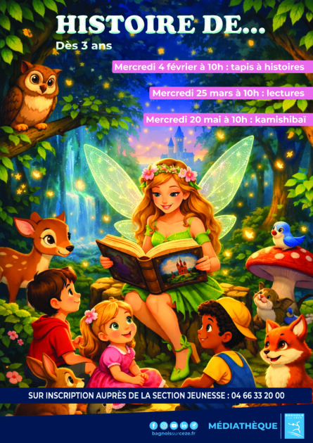 Lectures : Un temps pour se poser avec son enfant et se laisser emporter au pays des contes. En famille, dès 3 ans. Gratuit sur inscription.