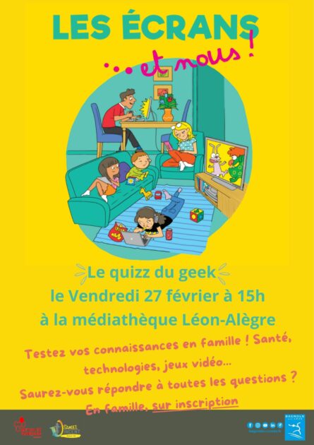 Quizz culturel et ludique sur les écrans avec des questions sur la santé, l’évolution des technologies, les jeux de consoles et les points à connaitre pour les parents. Gratuit sur inscription.