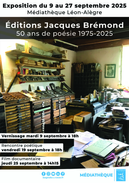 Vernissage de l’exposition des éditions Jacques Brémond : 50 ans de poésie 1975 -2025. Tout public. Gratuit.
