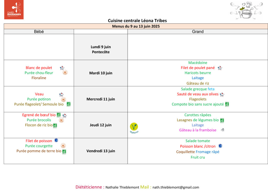 Menu des restaurants scolaires et A.L.S.H