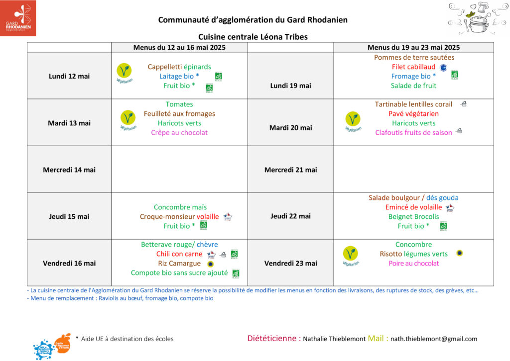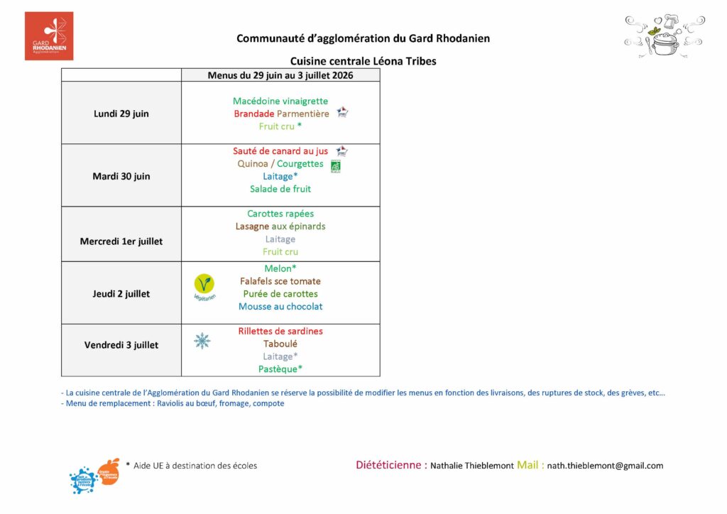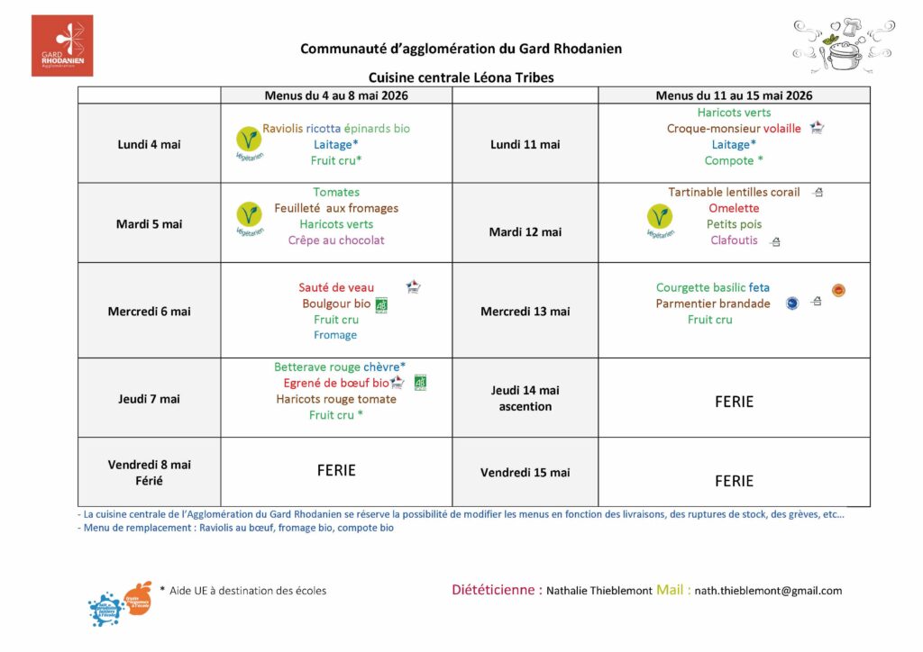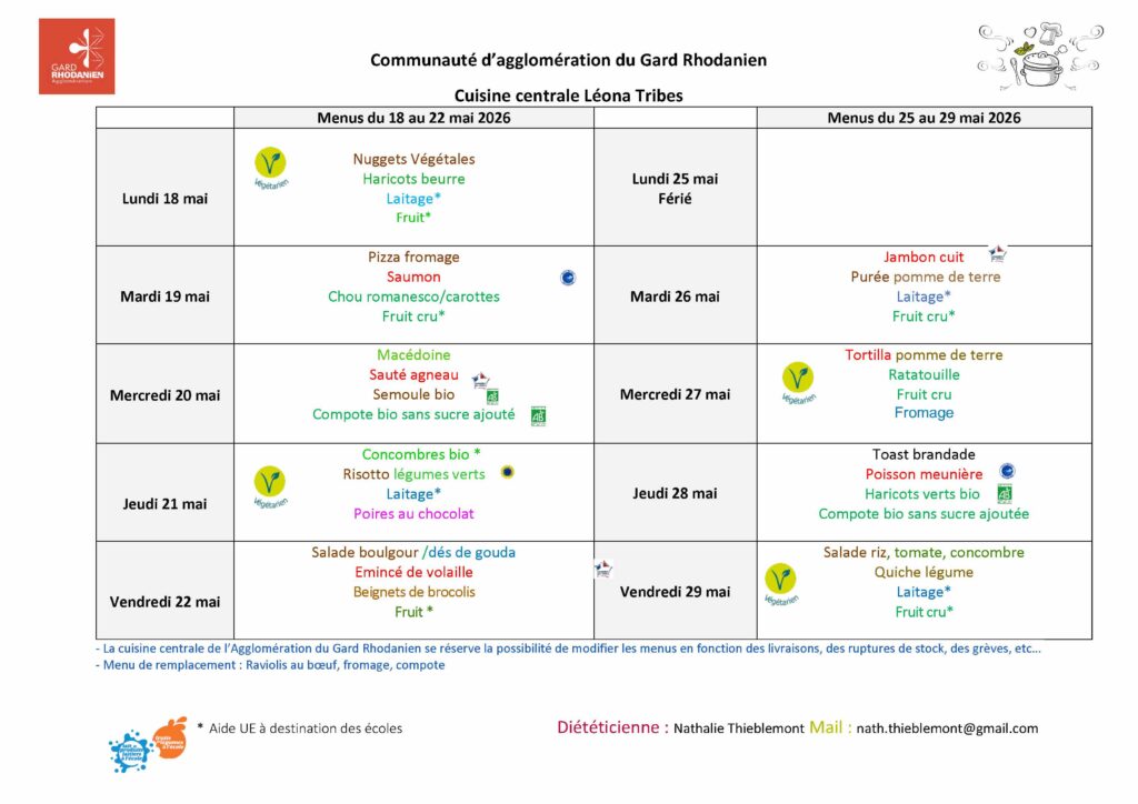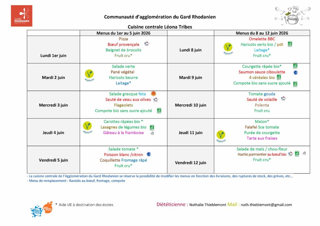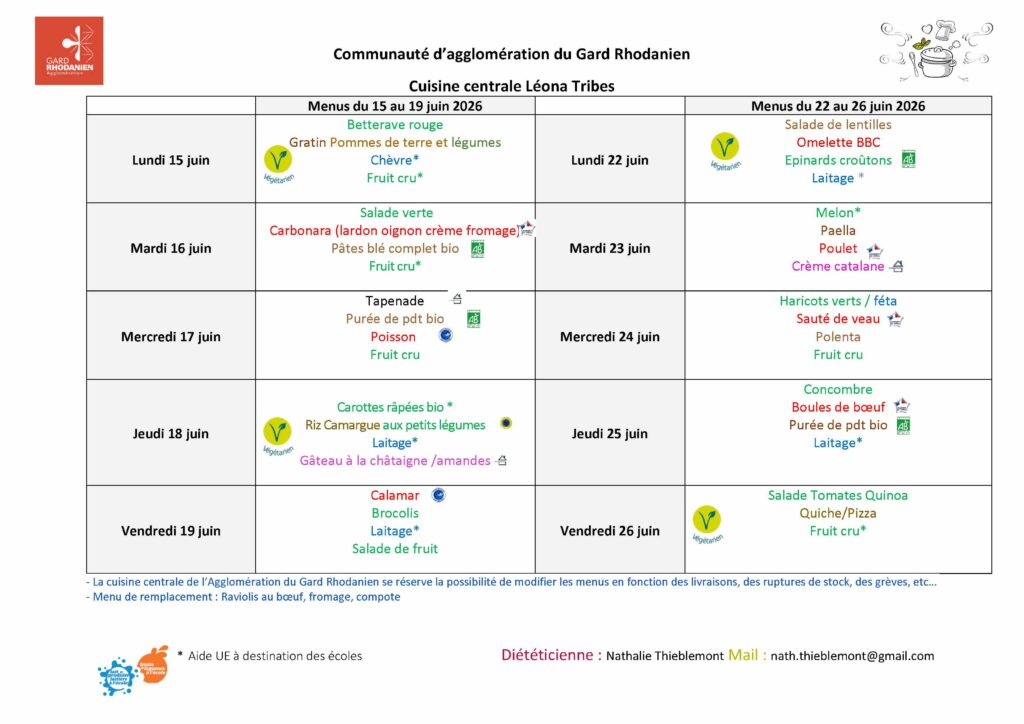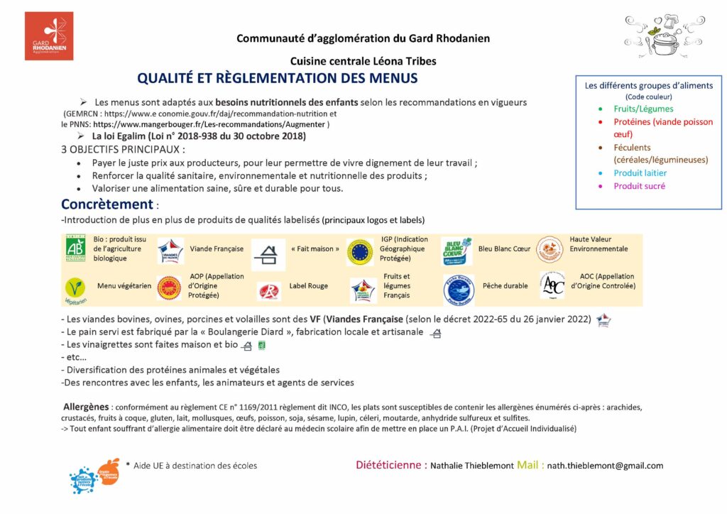Menu des restaurants scolaires et A.L.S.H